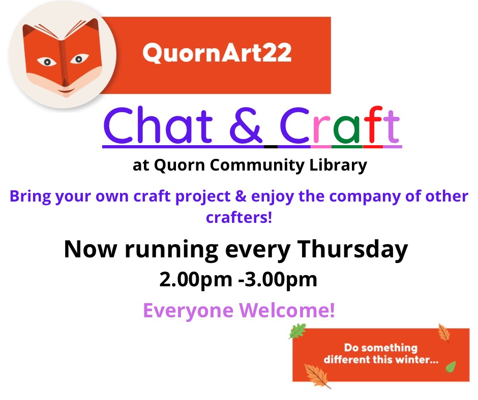 Chat and Craft January 26, 2022 Chat and Craft sessions now running every Thursday 2pm – 3pm. Share this: Click to share on X (Opens in new window) X Click to share on Facebook (Opens in new window) Facebook