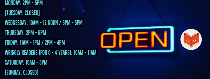 Friday: 11am – 1pm / 2pm – 4pm and Wriggly Readers (for 0 – 4 years): 10am – 11am